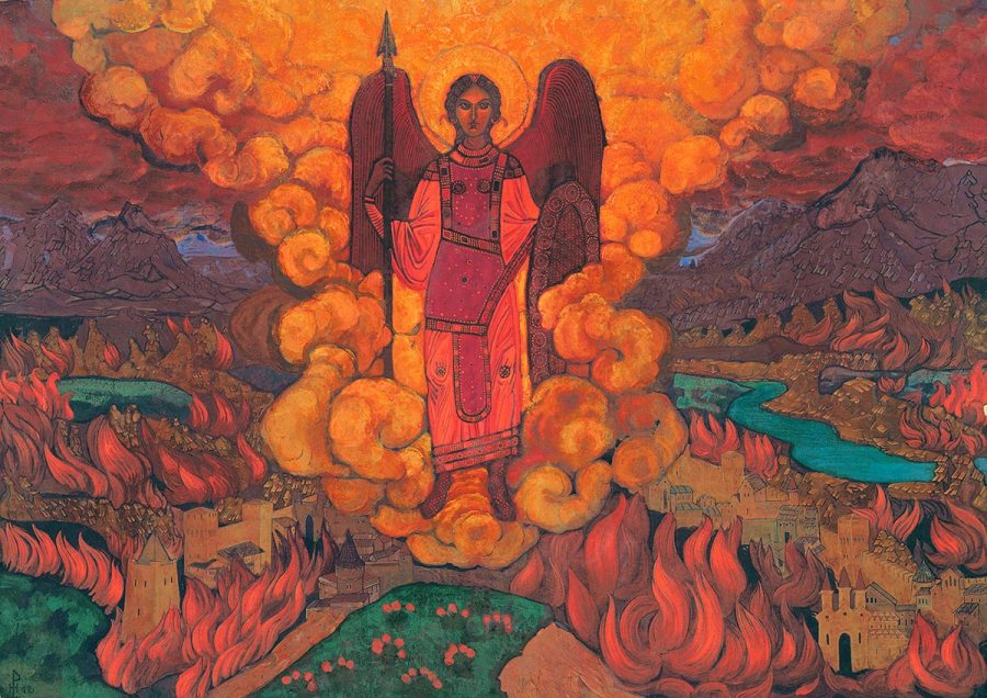 The Last Angel by Nicholas Roerich — Tempera on cardboard, 20 3/4 x 29 inches, 1912. Photo by the Nicholas Roerich Museum, New York. April 23, 2023 Lectionary Texts — Year AActs 2:14a, 36-41 • Psalm 116:1-4, 12-19 • 1 Peter 1:17-23 • Luke 24:13-35 View Lectionary Image description: Dominating a vast landscape and sky …
