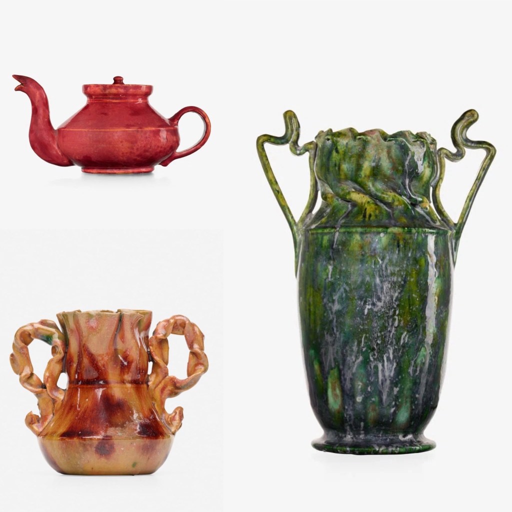 Ever since an antiques dealer found himself in an auto shop down in Biloxi, Mississippi staring at a wall of boxes at the back of the shop in the early 1970’s, the world has been waking up to the pottery of George E. Ohr, also know as “the mad potter of Biloxi.” The auto shop was owned by George’s sons, who had stashed their father’s some 10,000 “mud babies” (the term George gave his unique creations) in a mass of boxes and crates. When offered to take a look at “some of dad’s pottery”, the antiques dealer was captivated by the beauty of the pieces. He spent years negotiating with the Ohr family to buy the entire collection and eventually a deal was made. Taking the finds back to New York, the dealer began selling pieces. Artists like Andy Warhol and Jasper Johns were among the first to snatch up these odd, imperfect, creative, brilliantly colored, yet skillful vessels.